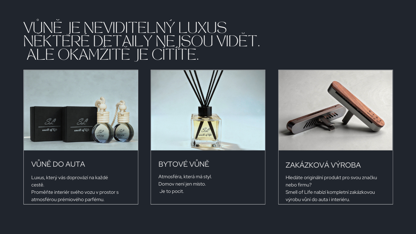 Přestaňte se spokojovat s průměrem. Smell of Life je tu pro ty, kteří chtějí od života víc – vůně, které nejen provoní prostor, ale také zanechají trvalý dojem.