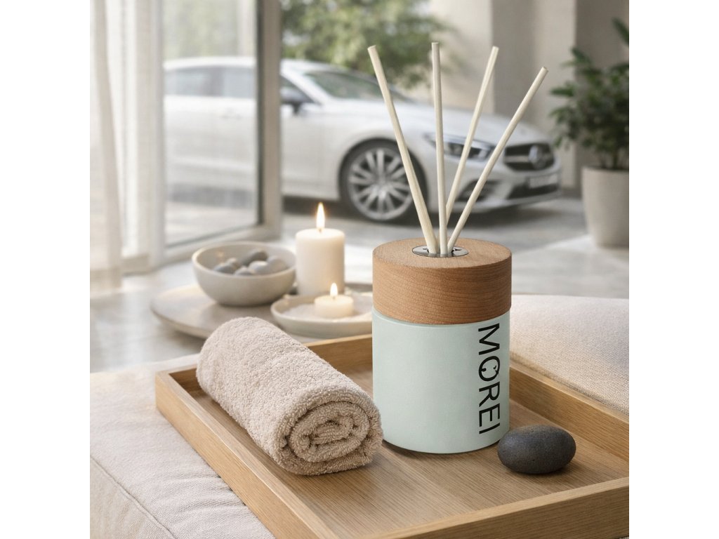 Nechte vůni přirozeně plynout prostorem a vytvořte si doma atmosféru klidu, lehkosti a vnitřní stability s naším difuzérem MOREI - Balance.